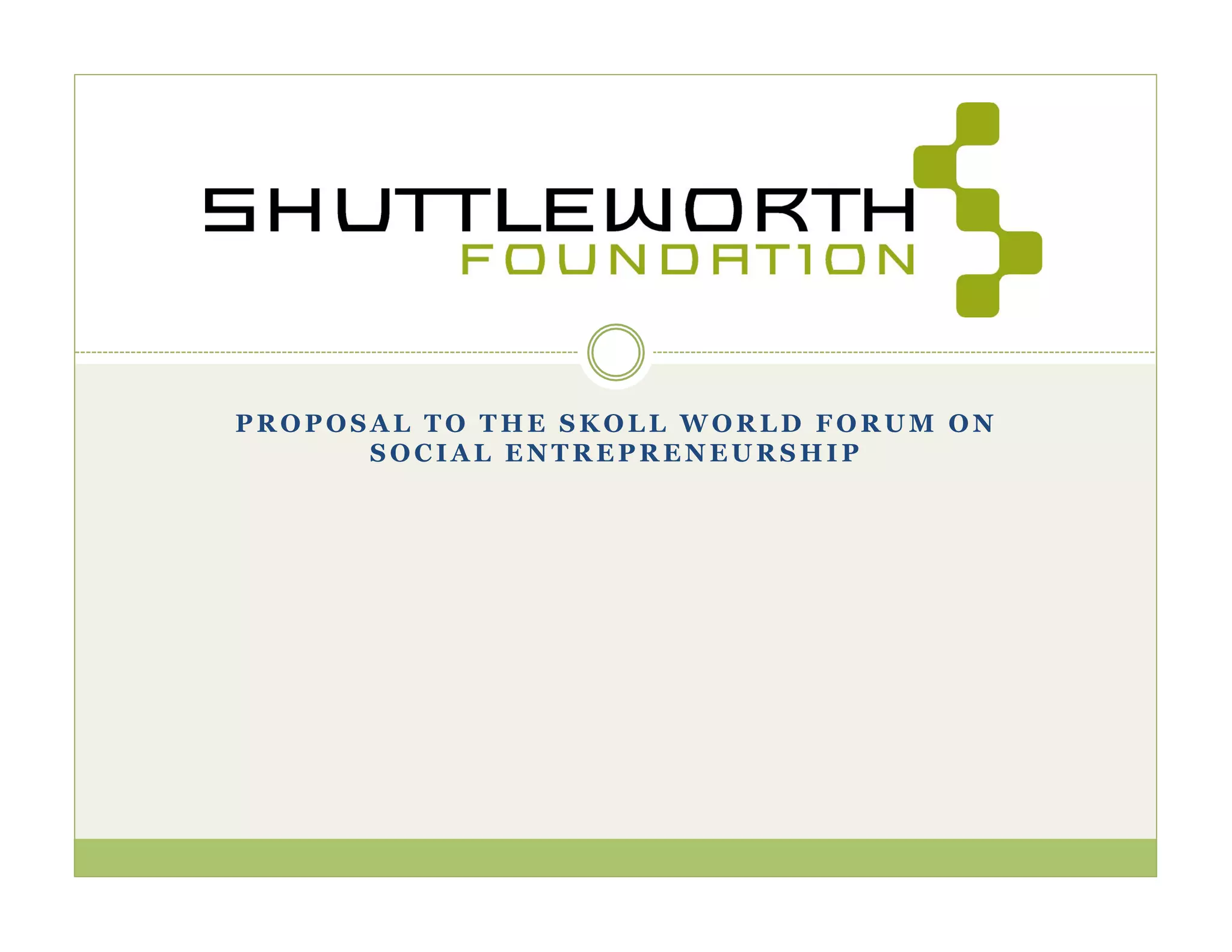 The Shuttleworth Foundation is promoting its work to find new partners and projects. Its mission is to drive social and policy innovation in education and technology through open dialogue and measurable projects. It focuses funding on innovative pilot projects that can deliver impact in South Africa and beyond. The Foundation seeks experienced social entrepreneurs with interest in its mission of creating an open knowledge society through open licenses, collaboration, and transparency.
