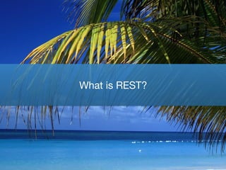 Ben Ramsey's presentation on REST discusses its principles including representational state transfer, client-server architecture, and the importance of hypermedia in enabling client resource discovery. It emphasizes the benefits of REST such as scalability, extensibility, and evolving without breaking clients, alongside examples of RESTful implementations. The presentation concludes with a call to explore further resources on REST and encourages audience engagement through his blog and social media.