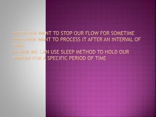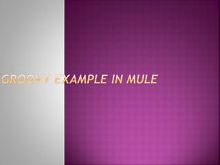 The document describes how to use a Groovy scripting component in Mule to hold a file payload for a specified time interval before writing it to an outbound location. It shows a Mule flow that uses a Groovy script with the sleep method to hold the payload for 3000 ms. This allows controlling the timing of when a file is written from an inbound to outbound location instead of immediately.