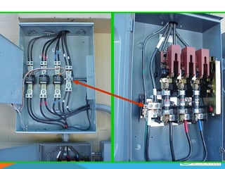 The document discusses grounding and bonding practices in electrical systems, highlighting an incident involving incorrect neutral connections that resulted in dangerous voltage levels. It outlines the importance of proper grounding for safety, operational integrity, and equipment protection, distinguishing between various grounding systems such as solidly grounded, ungrounded, and high impedance systems. Additionally, it details relevant National Electrical Code (NEC) requirements and safety guidelines to prevent electrical hazards and ensure effective grounding practices.