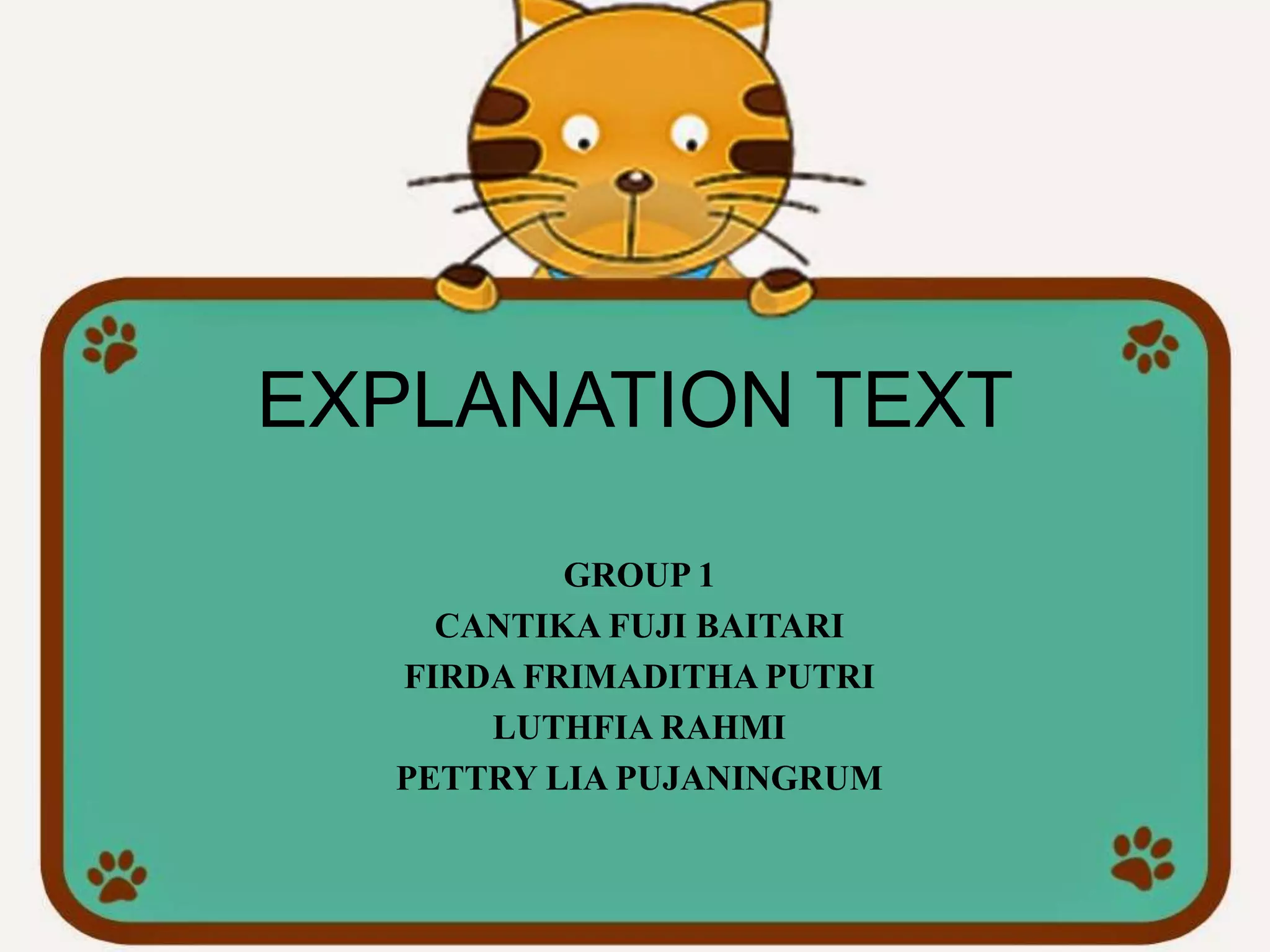 The document defines and discusses explanation text. It begins with the definition of explanation text as a text that tells how and why natural, social, scientific, and cultural phenomena occur. It then discusses the social function, generic structure, and language features of explanation texts. The generic structure includes a general statement, sequenced explanation, and optional closing statement. Language features include using simple present tense, abstract nouns, passive voice, and action verbs. An example explanation text on how rainbows are formed is also included.