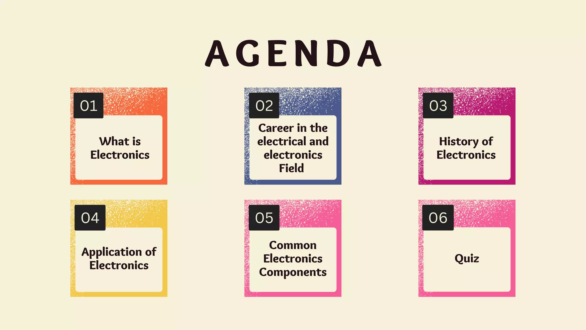 This document provides an introduction to electronics, including definitions, careers, history, applications, and common components. It begins with defining electronics as the study of devices that control electricity flow. Careers discussed include electrical engineers, who design products and write specifications, and electricians, who install and maintain systems. The history outlines discoveries like the electron and inventions like the vacuum tube. Electronics have wide applications in fields such as consumer devices, industrial automation, medical equipment, defense, automotive, and environmental monitoring. Common components are then explained, including resistors, capacitors, inductors, diodes, transistors, switches, batteries, buzzers and LEDs.