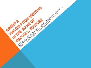Viacom's pitch meeting discussed strategies for adapting to new technologies in the wake of their lawsuit against YouTube. The group proposed integrating Viacom content into Sony's interactive TVs, using prominent ads on Bing to promote official Viacom websites and eliminate unauthorized sites, and continuing Microsoft's existing partnership by providing user demographic data while complying with DMCA takedowns. However, Viacom remains hesitant to commit significant resources to new technologies and wants to retain their current profitable business model by adapting later once technologies are established.