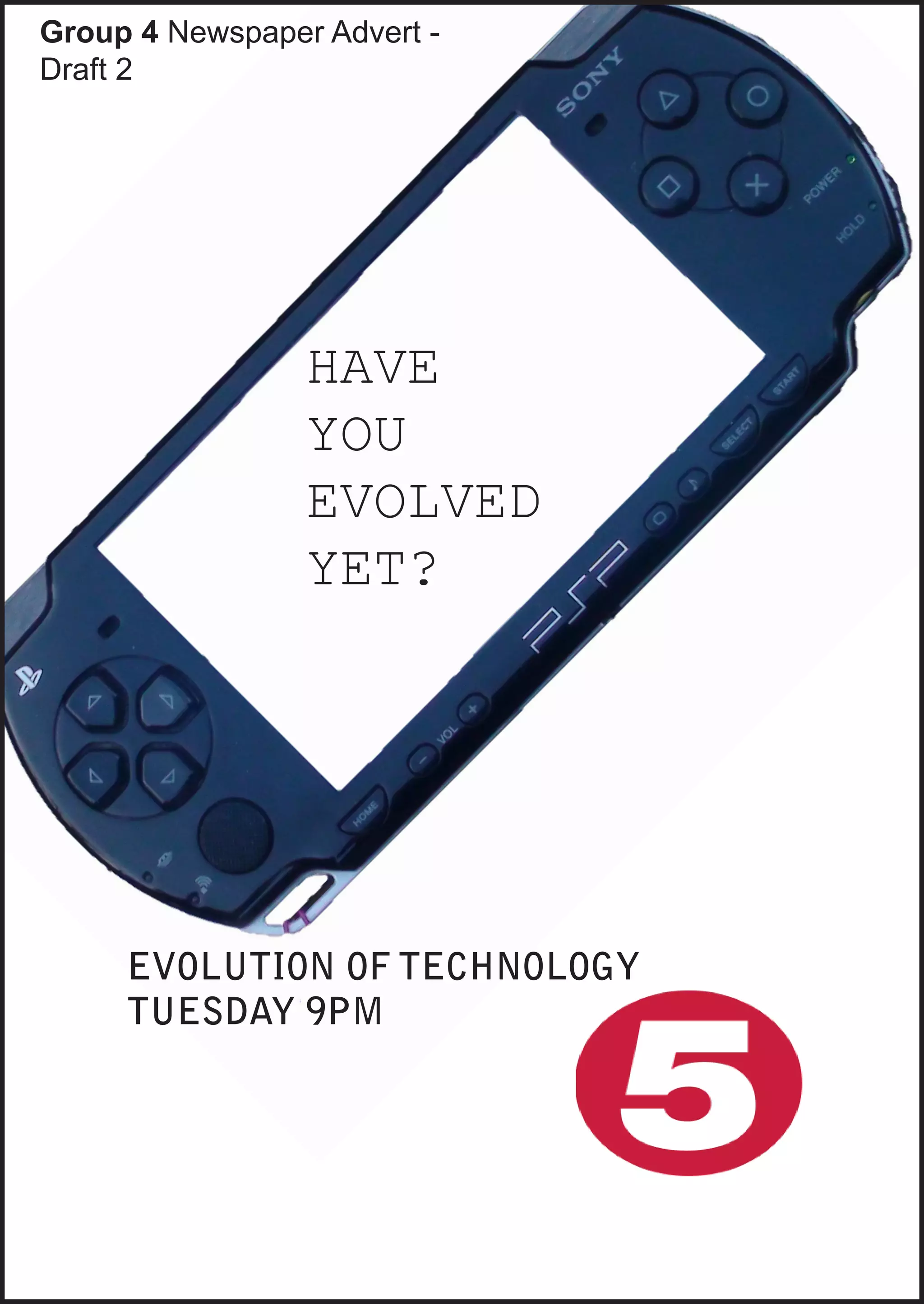 This document contains draft materials for advertising an upcoming documentary on the evolution of technology, including a newspaper ad, double page spread, and quotes from the presenter. The newspaper ad promotes the documentary airing on Tuesday at 9pm. The double page spread previewing the documentary includes a quote from the presenter about societal concerns with technology over the years and how issues like privacy and security breaches are understandable. It also features a quote about how technology is now essential and a brief description of the documentary exploring changes in technology from its early developments to the modern day.
