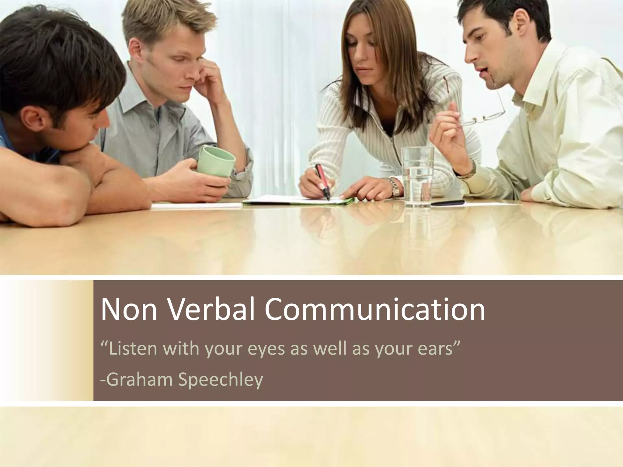 This document provides an overview of different types of non-verbal communication presented by a group. It discusses kinesics including body posture, gestures, and facial expressions with examples. It also covers proxemics, artifacts, haptics, paralanguage, environment, and silence. The presentation aims to help understand these 9 types of non-verbal communication through individual observations and examples. It concludes with questions for readers on applying this knowledge and how non-verbal behavior has changed over time.