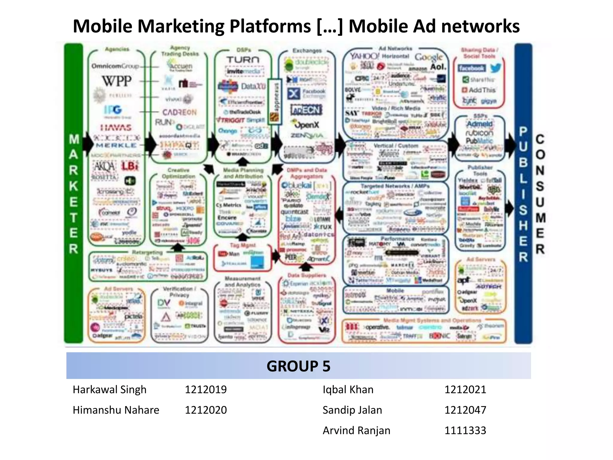 The document discusses the mobile advertising landscape, covering different types of mobile ad networks, their advantages for publishers and advertisers, and key insights from a study on global mobile media consumption. It highlights the importance of targeting, audience data, and the shifting dynamics in ad-tech consolidation. Additionally, it notes the rising impact of mobile marketing on the economy and user behavior, forecasting significant growth in the sector.