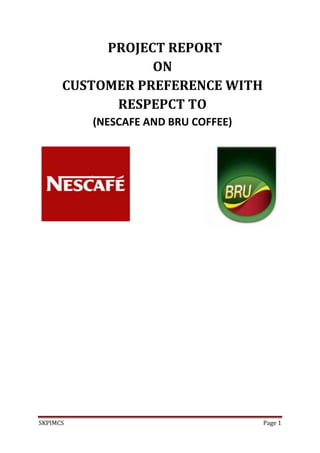 This report analyzes customer preferences between Nescafe and Bru coffee brands based on a survey of 50 respondents. The key findings are that Nescafe is preferred over Bru, with 35 respondents choosing Nescafe. Taste was found to be the most important factor influencing brand choice. Most respondents drink coffee once per day and are satisfied with their chosen brand and its advertising.