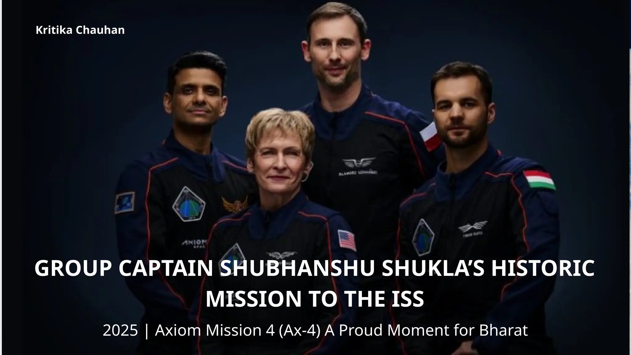 This presentation celebrates the historic journey of Group Captain Shubhanshu Shukla, an Indian Air Force test pilot selected as one of the astronauts on Axiom Mission 4 (Ax-4)—India’s first human presence in space after 41 years.