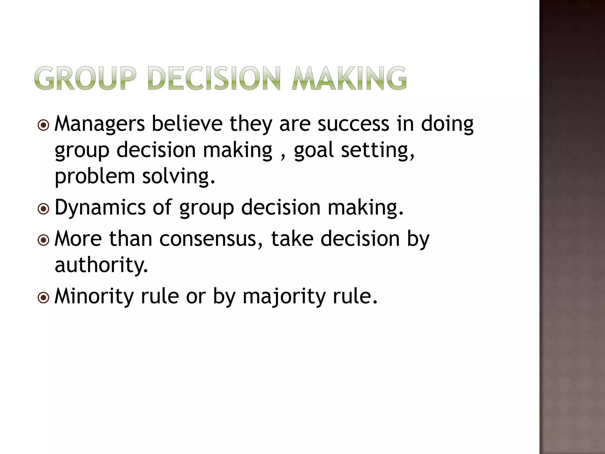 The document discusses several group decision making techniques: majority rule, minority rule, decision by authority, nominal group technique, Delphi technique, and electronic meeting. It provides an overview of the key steps and advantages/disadvantages of each technique. The conclusion recommends that managers evaluate their group and situation to select the best technique for their objectives.