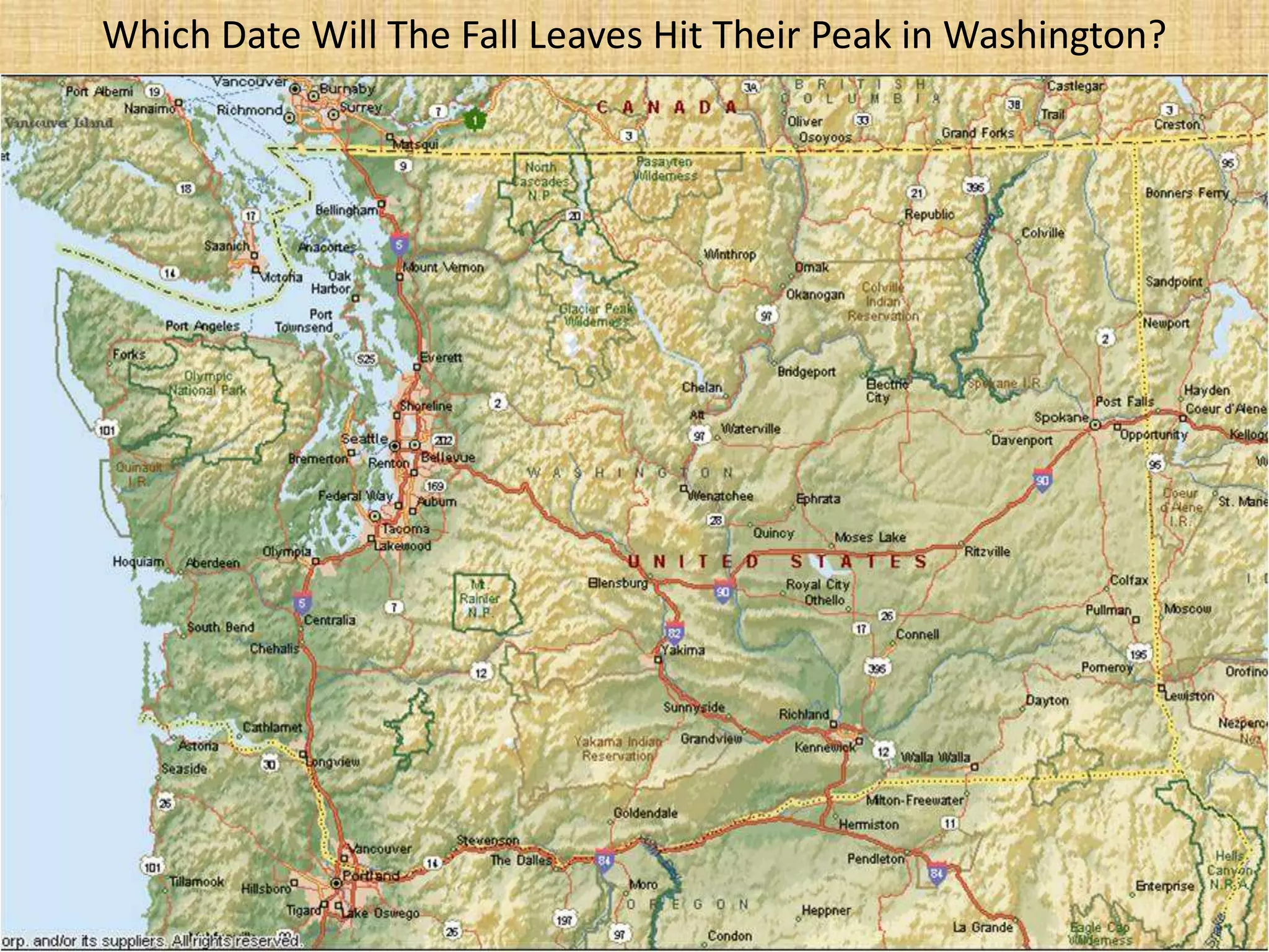 Students will collect data on leaf color changes in Washington to determine when peak color occurs in different locations and under various conditions. They will record the town, date of peak color, elevation, and any weather events. After analyzing the compiled class data, students will develop a hypothesis about factors influencing color change and email a summary. Finally, they will design an experiment to test their hypothesis in future years.