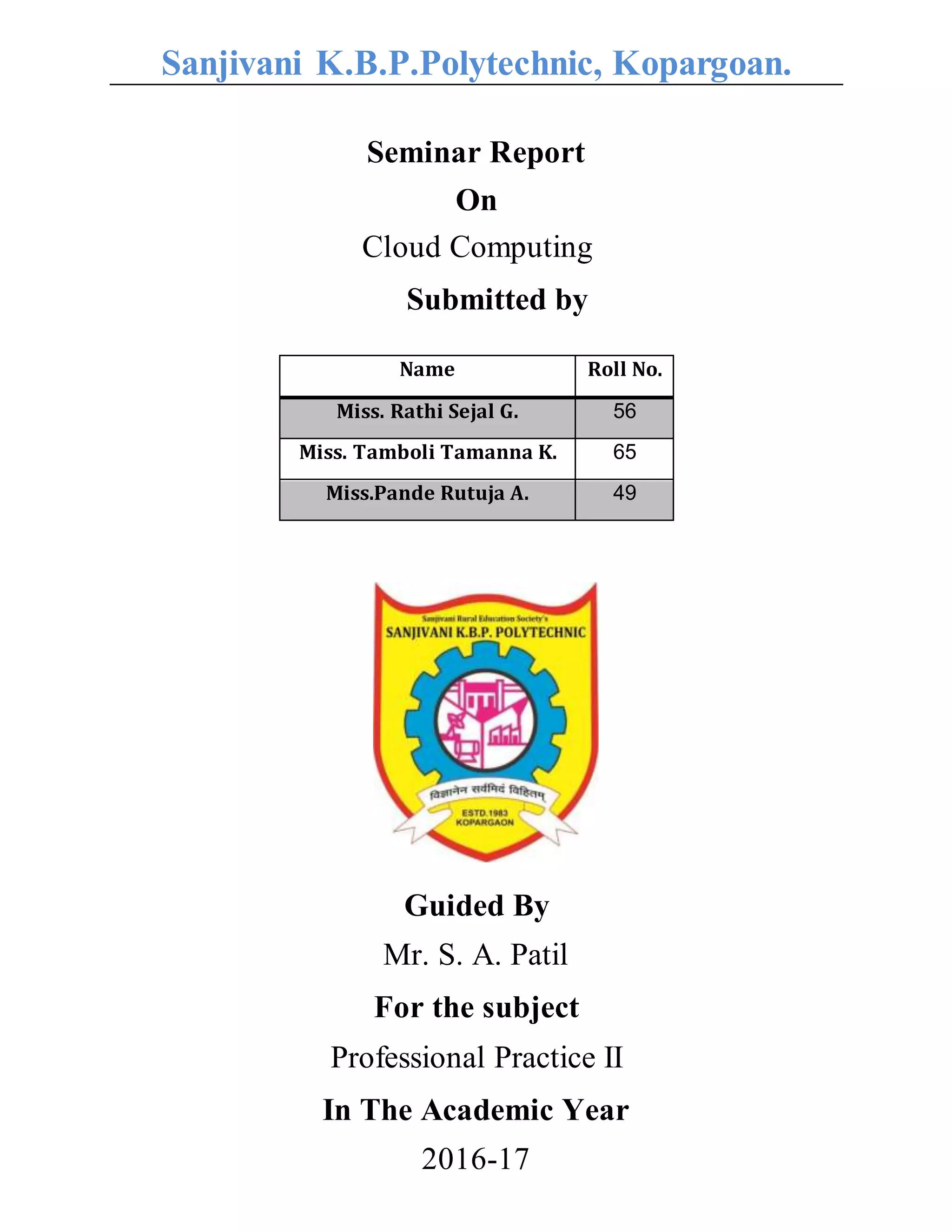 The seminar report on cloud computing discusses its definition, history, architecture, and types of services, including SaaS, PaaS, and IaaS, emphasizing its paradigm shift towards internet-based resources. Cloud computing reduces costs and infrastructure risks while enhancing scalability and innovation, as it allows users to access computing power without the need for physical servers. The report highlights the trend towards cloud services, reflecting the increasing importance and impact of cloud computing on both individual users and organizations.