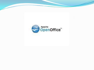 This document provides information about the open-source productivity software Apache OpenOffice. It discusses OpenOffice's included applications like word processing, spreadsheets, and presentations. Some key advantages of OpenOffice are that it is free to use, open source, and compatible with multiple operating systems. Some potential disadvantages are higher memory usage and limited font options. The document explores uses of OpenOffice in education and compares it to Microsoft Office. It concludes that OpenOffice meets the needs of an office software package and is freely available.