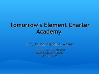 The document outlines the vision, mission, and structure of Tomorrow's Element Charter Academy. The key points are: