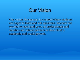 1. The vision is for a school where students are eager to learn, teachers are excited to teach, and families are valued partners in their child's education.