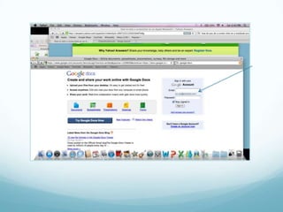 This document provides instructions on how to use Google Docs and Google Presenter. It begins with an introduction to Google Docs, explaining that it allows multiple users to collaboratively edit documents online for free. Next, it outlines the similarities between Google Docs and Microsoft Word, including their toolbars and formatting options. The document then introduces Google Presenter, which can be used to create presentations similar to PowerPoint. It provides steps for creating a new presentation and sharing it with others. Finally, it discusses advantages like collaboration capabilities as well as limitations like fewer customization options compared to PowerPoint.