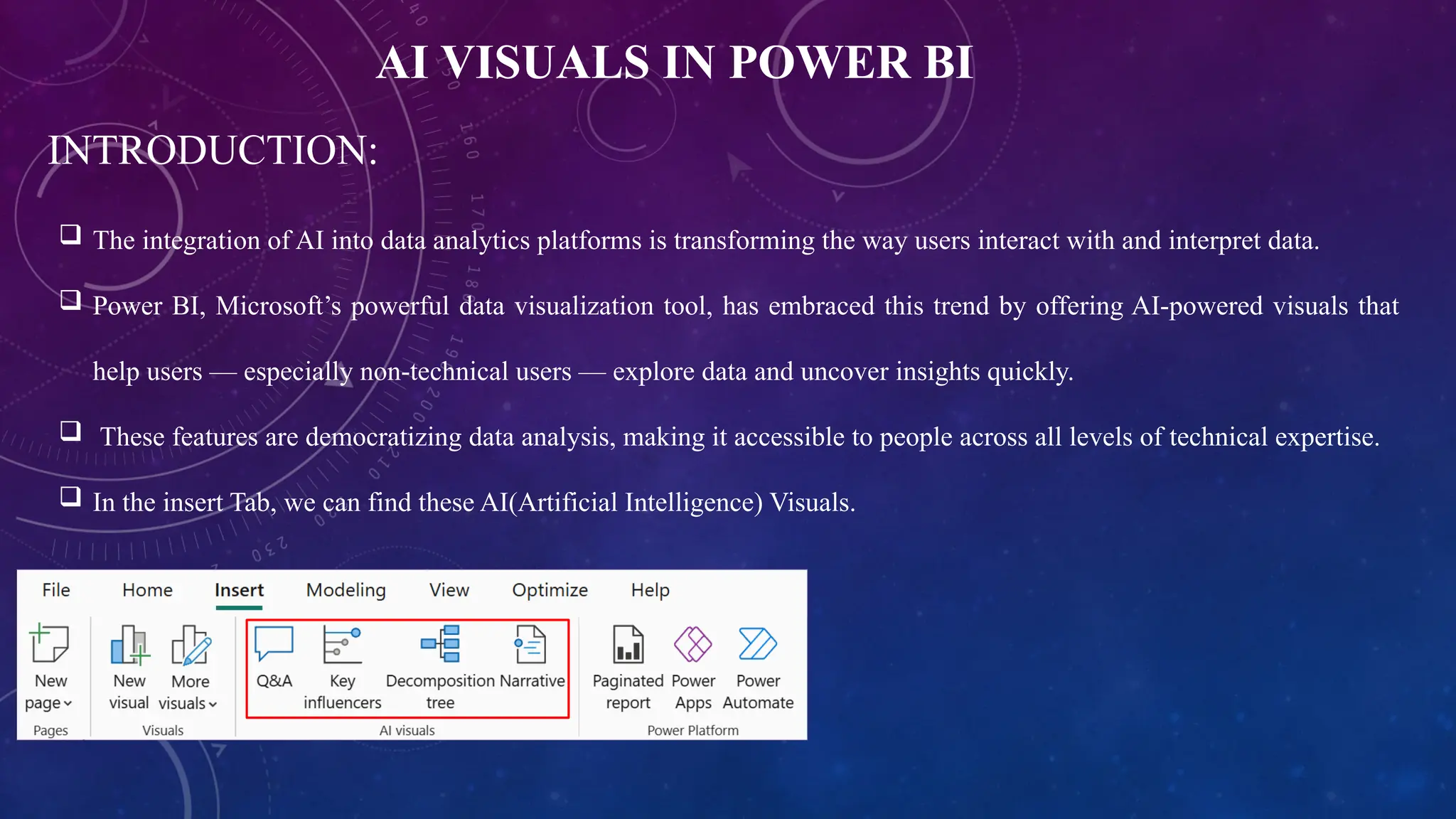 There are four major AI Visuals in Power BI, each one helps users to explore data in different