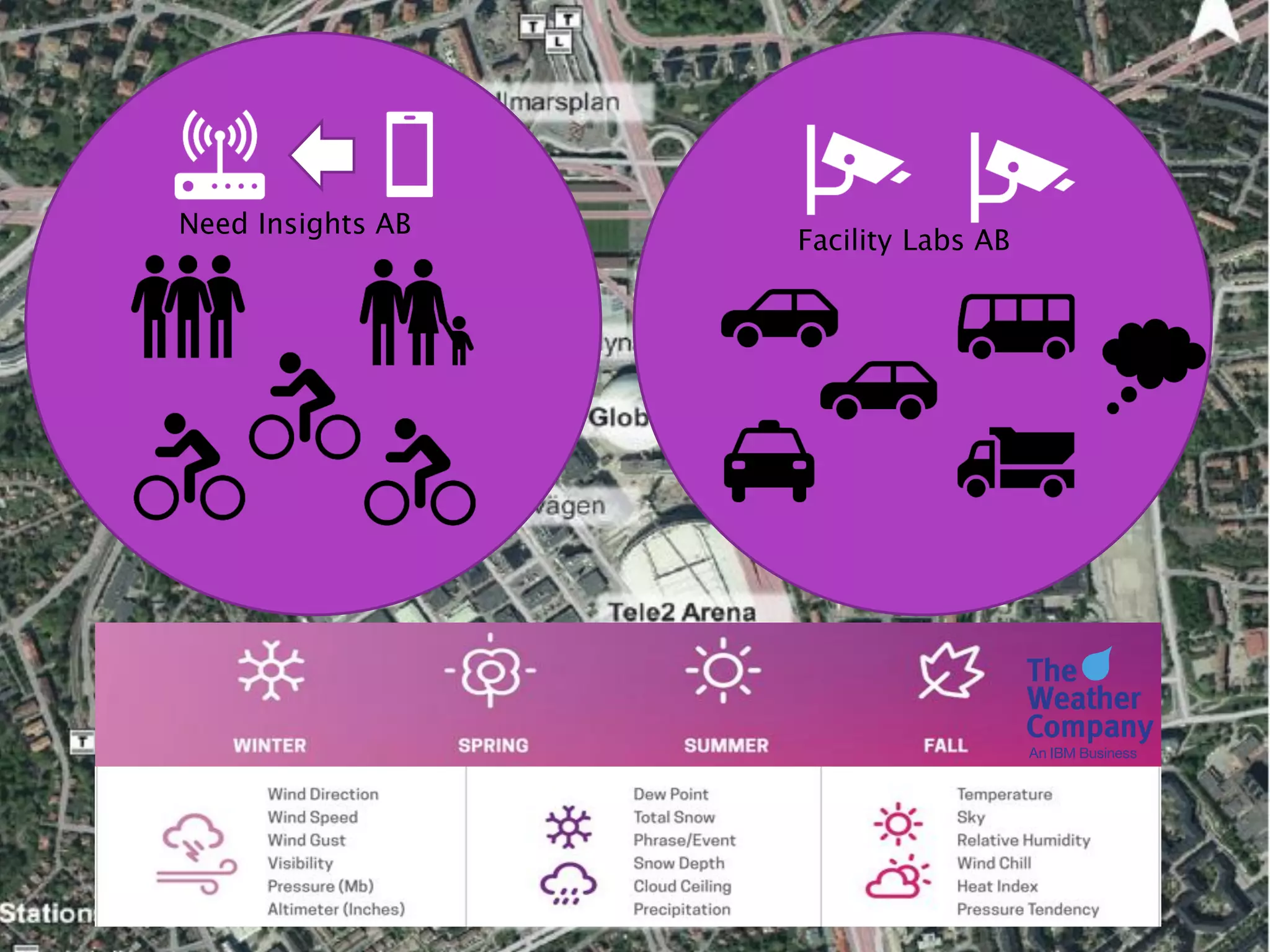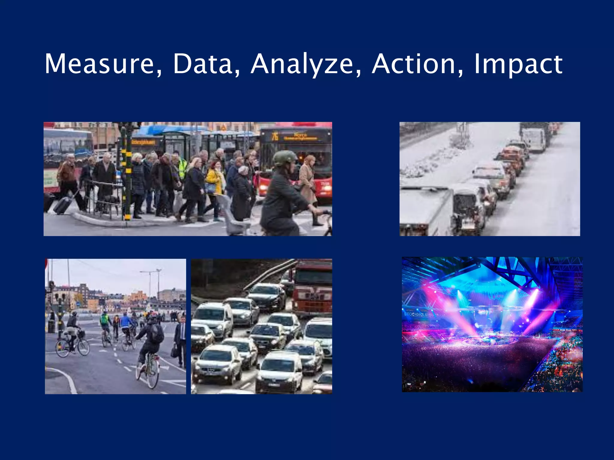 The document outlines the 'Growsmarter Vision 2040' initiative in Stockholm, focusing on intelligent transportation through open APIs, data analytics, and IoT platforms. It emphasizes improving traffic management, enhancing user experience for travelers and citizens, and reducing emissions. The initiative aims to leverage data from various sources to deliver actionable insights for traffic and city planning.