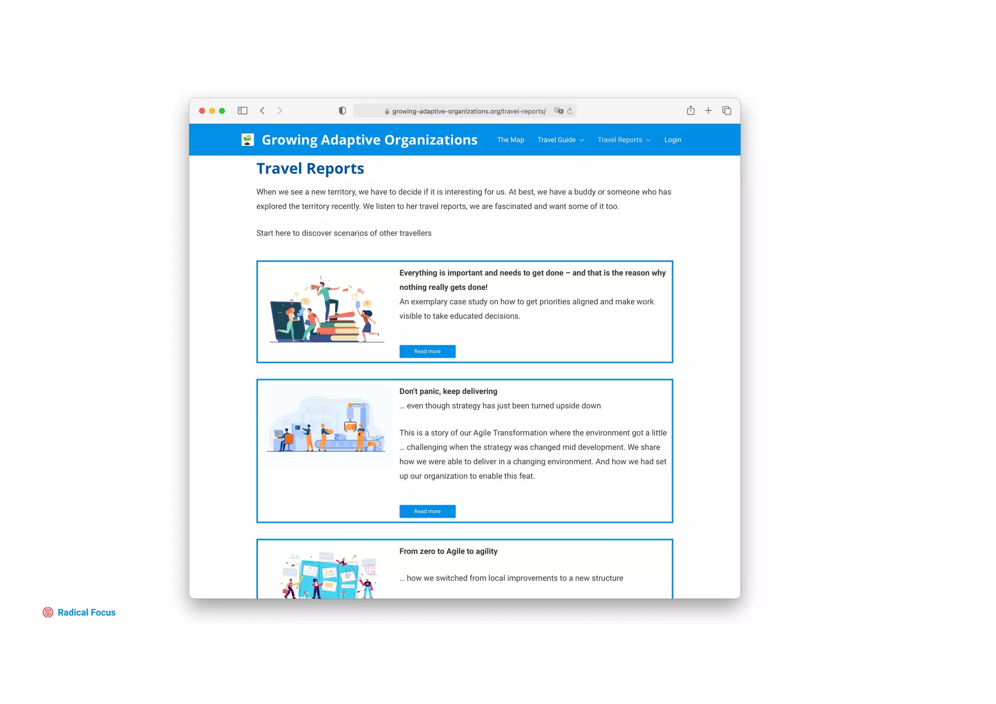 The document outlines a platform designed to aid the development of adaptive organizations in a VUCA (Volatile, Uncertain, Complex, Ambiguous) world by guiding users through various stages of knowledge acquisition, from beginner to expert. It emphasizes a learning journey that includes structured support and iterative processes, along with transformation patterns that foster effective collaboration and leadership commitment. The approach promotes a common understanding of values and principles, encouraging experimentation and adaptation to enhance organizational efficiency and resilience.
