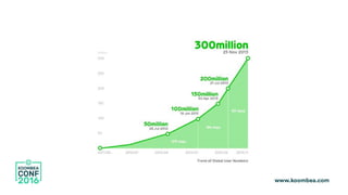 The document discusses the growth of a company from 0 to 100 million users, focusing on the challenges and solutions related to database architecture and scaling. It highlights the transition from Postgres to MySQL and NoSQL databases like Cassandra, along with utilizing Amazon RDS and AWS Lambda for auto-scaling and serverless computing. Additionally, it emphasizes the importance of infrastructure as code for deployment and management efficiency.