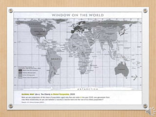 The document discusses the biology and culture of aging, highlighting the relationship between aging and societal perceptions. It covers various aspects of gerontology including biological, psychological, and social changes that elderly individuals experience, as well as the cultural differences in how the elderly are treated across different societies. Japan is noted as a unique case where elderly individuals are traditionally respected, although this is changing in modern times due to economic challenges.