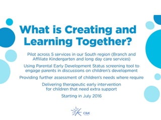 The document discusses challenges that early childhood educators face in supporting children with complex emotional and social needs, as well as their families. Educators felt they lacked training and confidence to provide feedback to parents on children's needs, encourage follow through on referrals, and work across disciplines. The document proposes adopting a design-thinking approach and child-centered practice model to develop new strategies for supporting children and families.