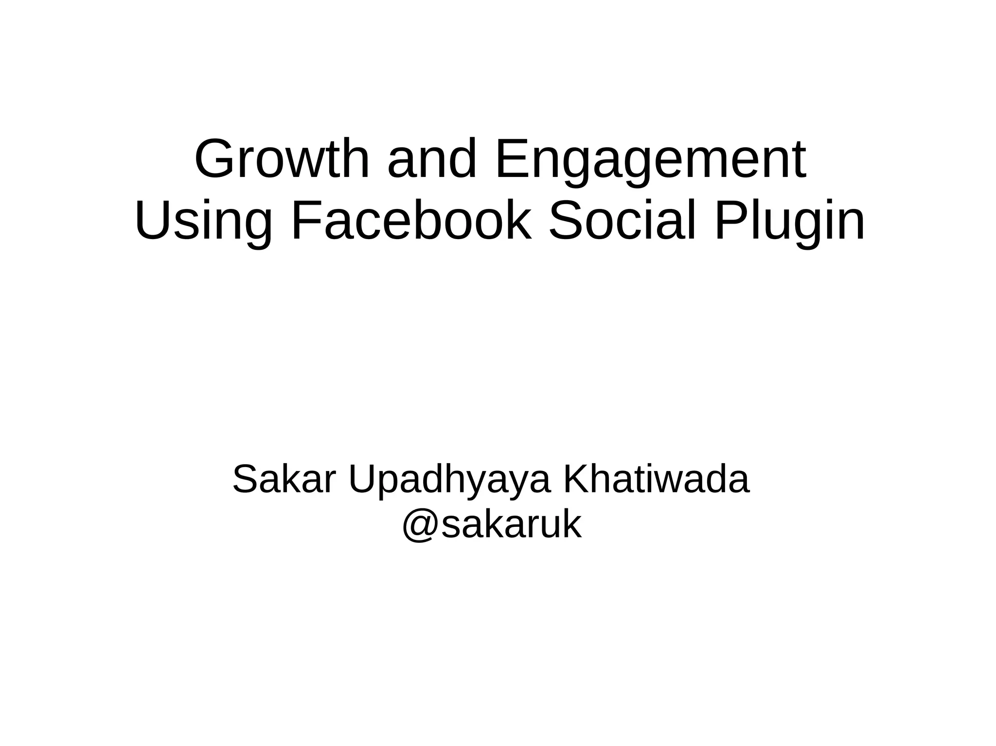 This document discusses how to use Facebook social plugins like the Like, Share, and Send buttons as well as embedded posts, videos, comments, page plugins, and follow buttons to increase engagement on websites and drive traffic to Facebook. It provides an overview of the various social plugins available and tips for moderating comments by app or defining moderator profiles to improve the user experience.