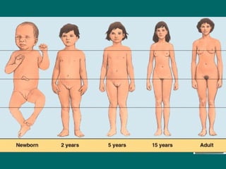 1) Phases of growth including infancy, preschool to puberty, and puberty which is the second most rapid growth period.