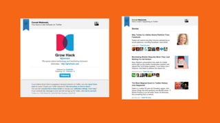 This document discusses growth hacking, which involves low-cost and innovative marketing techniques to drive growth, especially for startups. Growth hackers prioritize growth above all else and focus on finding their target customers wherever they are online. The document provides examples of how companies like Airbnb, Twitter, LinkedIn, and Buffer used growth hacking techniques like creative distribution methods and viral sharing features to expand rapidly. Analytics are emphasized as important for growth hackers to evaluate techniques and focus on what is most effective.