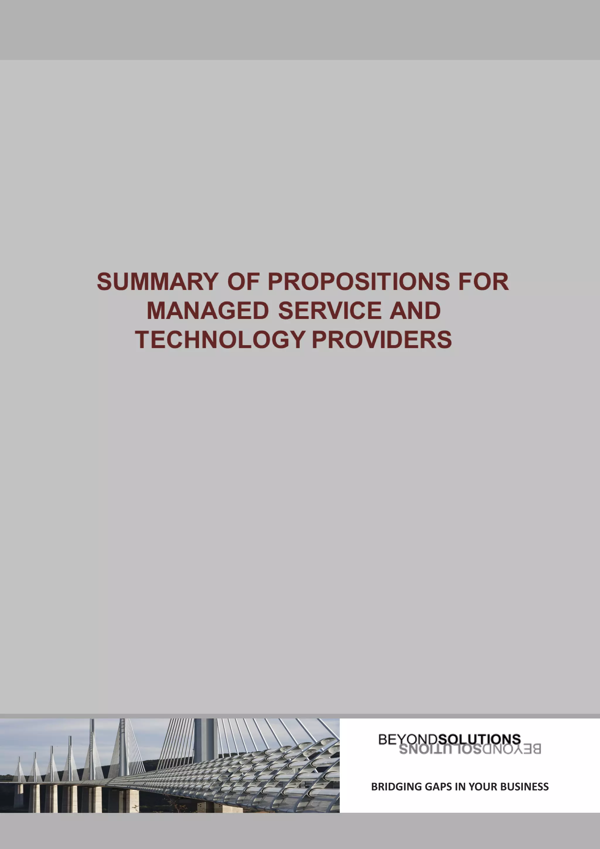The document discusses ways to bridge gaps in a business. It identifies common problems such as needing more traction in existing markets, adjusting to industry changes, stalled new business development, high costs of sales and bids not meeting expectations. For each problem, it provides a potential solution, approach and opportunity. The solutions focus on refining messages and offerings, identifying inhibitors, improving processes and gaining an outside perspective. The approaches involve discussions with clients, reviewing strategies and implementing plans. The opportunities include new revenues, decreased costs and improved results.