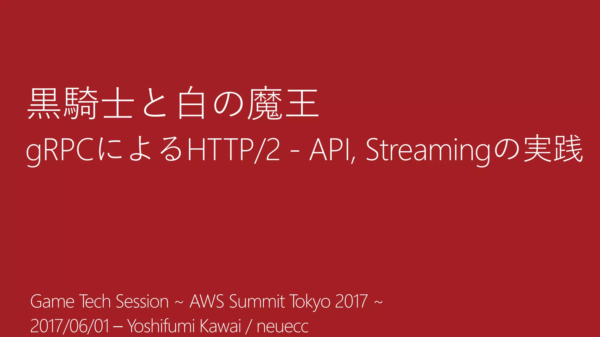 「黒騎士と白の魔王」gRPCによるHTTP/2 - API, Streamingの実践 3. 河合 宜文 / Kawai Yoshifumi / @neuecc