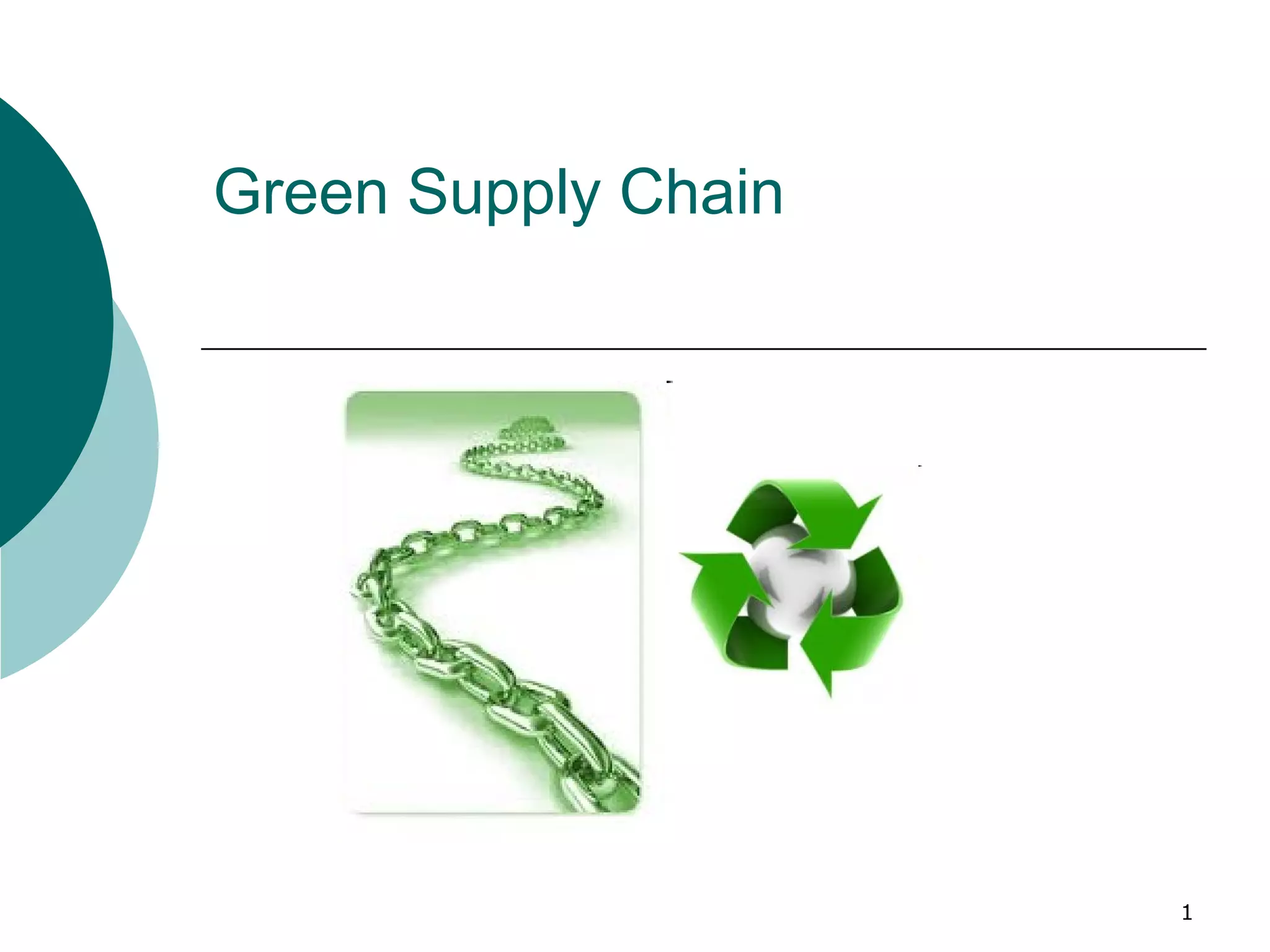 The document discusses green supply chain management. It defines green supply chain as including all stages from product design to retrieval in a sustainable way. It notes that green supply chain management has historically focused on encouraging suppliers to adopt green practices, but now aims to also create value through improved productivity, innovation, and growth. It provides examples of how adopting green supply chain best practices like waste reduction can increase business results and drive process improvements and innovation. The document also summarizes Walmart's ambitious goals to become more sustainable and green across its supply chain operations and provides specific examples of projects undertaken to achieve these goals.