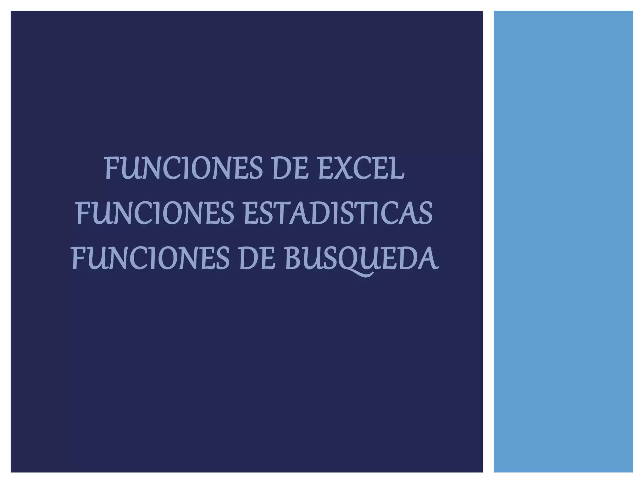 This document discusses various statistical functions in Excel including COUNT, COUNTA, COUNTIF, MAX, MIN, MEDIAN, VLOOKUP, and HLOOKUP. It provides examples of formulas using these functions to count cells, find maximum and minimum values, calculate median, and lookup values either vertically or horizontally in a table.