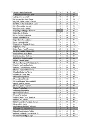 This document contains the final grades from Modules 1 through 3 for a group of students. It lists each student's name and their grades in each module, ranging from 4.0 to 10.0. There are 124 students listed with their grades. The highest grades were 10.0 and the lowest were 4.0. Most students scored between 6.0 and 8.0 in each module.