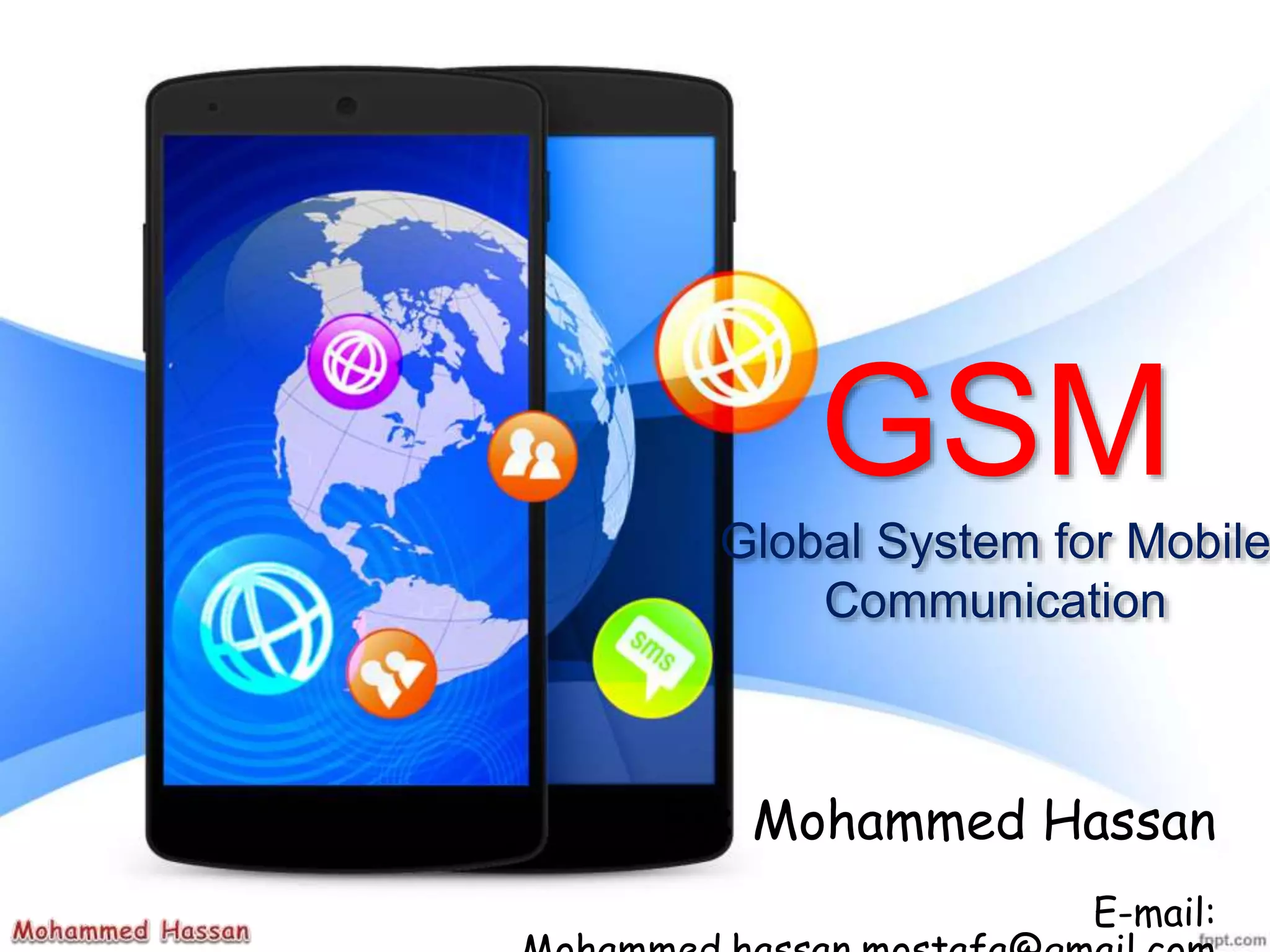 Global System for Mobile Communication (GSM) is a 2G digital cellular network standard that became the world's leading standard for mobile communications. GSM uses TDMA multiple access to allow multiple users to share the same radio frequency by dividing each radio channel into time slots. It offers advantages over 1G analog networks like increased network capacity, support for additional services beyond voice calls, and more efficient use of available spectrum.