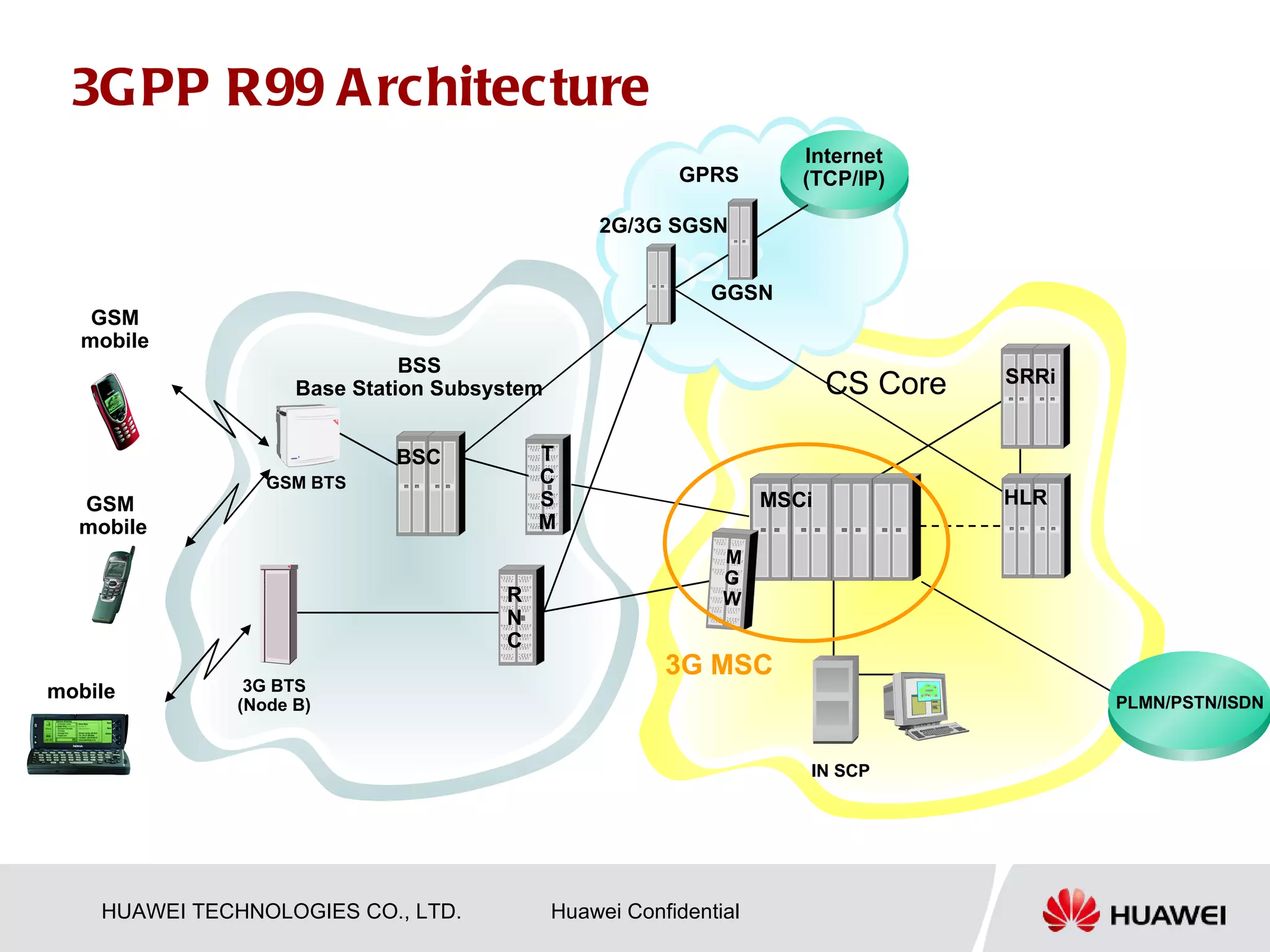 This document describes the evolution of 2G and 3G mobile network architectures. It shows: