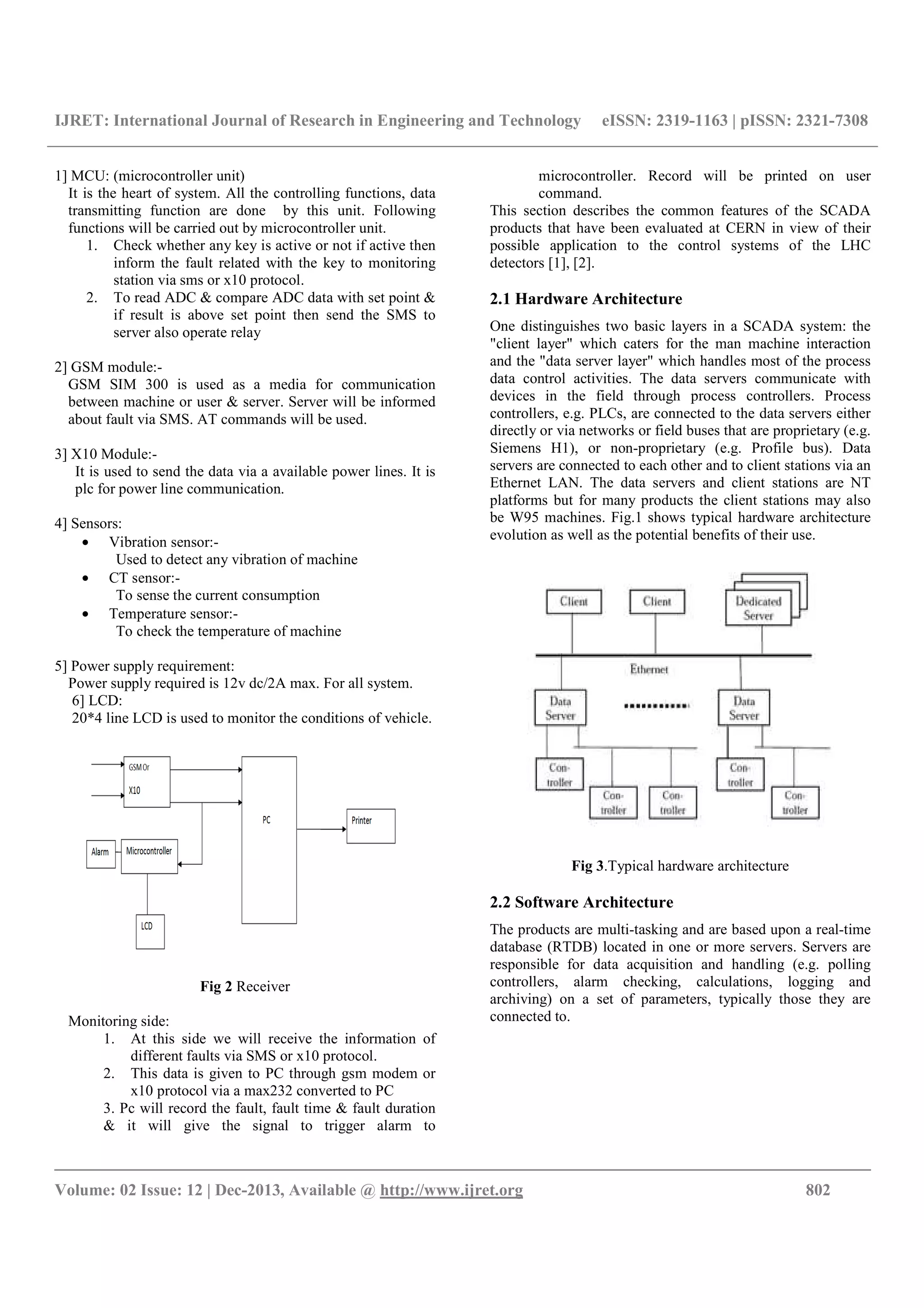 The document presents a GSM or X10 based SCADA system designed for industrial automation, focusing on monitoring and diagnosis of power systems to enhance reliability and safety. It outlines the architecture of the system, including components like microcontrollers, sensors, and communication methods, while addressing fault detection and real-time monitoring capabilities. The research highlights the importance of understanding system status and faults to improve operational performance and reduce costs.