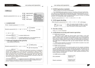 This document provides instructions for operating a home security system using GSM commands and passwords. It discusses: