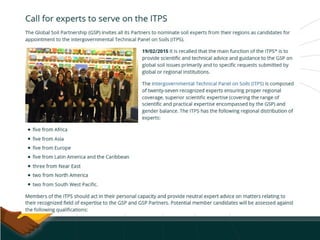The document discusses the Global Soil Partnership's activities and plans. It summarizes that over 110 countries and 10,000 people participated in the 2017 GSP capacity building program on soil topics. It outlines the creation of technical networks on soil information and black soils. It also discusses plans to improve the Global Soil Organic Carbon map with more data points and countries contributing. Other initiatives mentioned include guidelines for soil organic carbon management, a working group on fertilizer best practices, and bringing soil biodiversity to the Convention on Biological Diversity.
