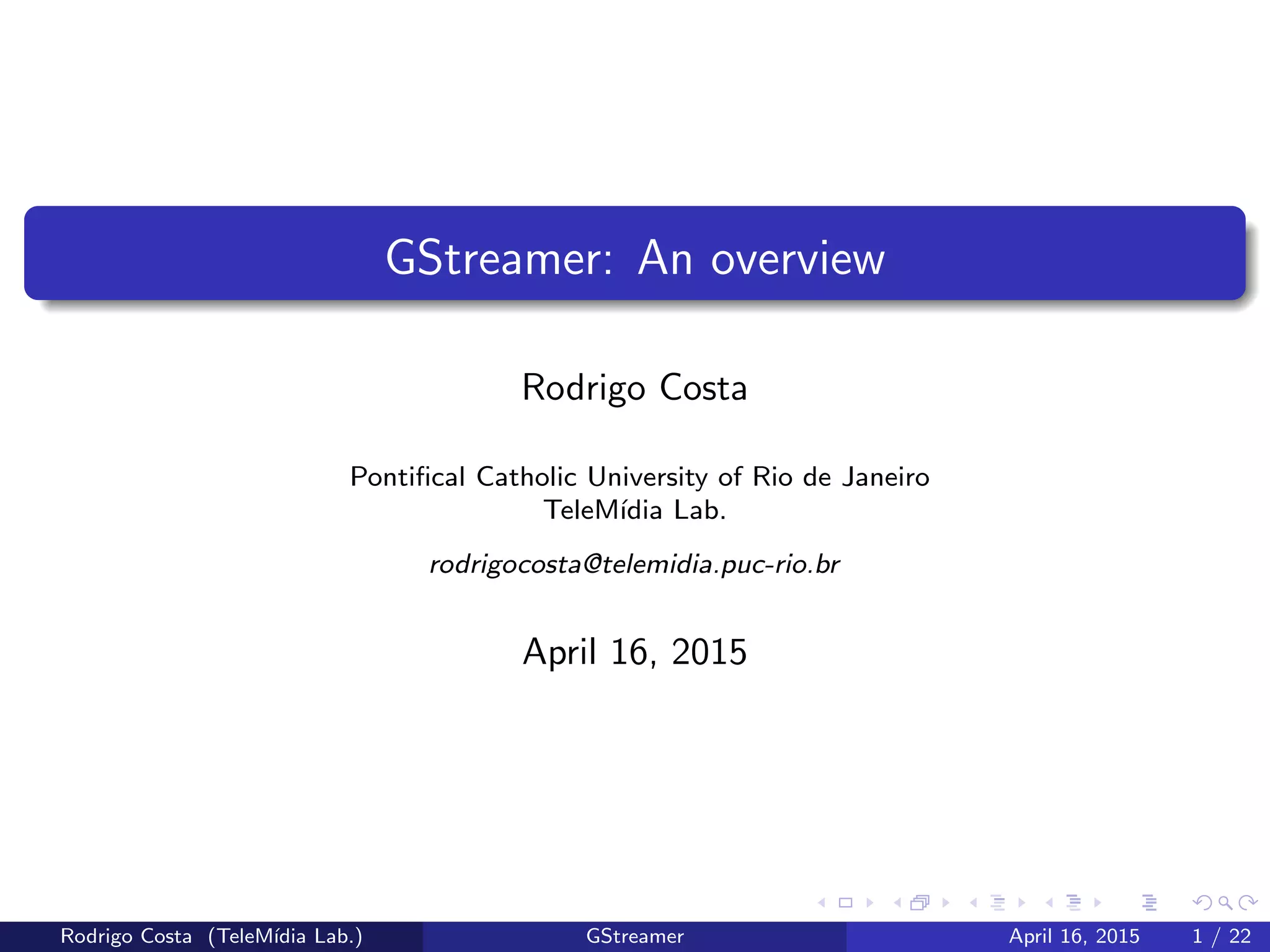 GStreamer is a multimedia framework for building applications that handle audio and video content. It provides reusable code modules called elements that can be linked together into pipelines to process multimedia. Elements include sources, filters, decoders, encoders and sinks. Pads connect elements and negotiate compatible data formats. Pipelines synchronize playback across elements and the framework supports integration with other projects and bindings to multiple programming languages.