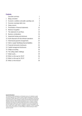 The document discusses several key themes for financial reporting in 2012: