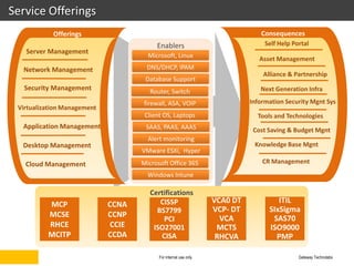 Gateway Technolabs provides remote infrastructure management capabilities, focusing on server, network, and application management across various platforms. They offer tailored solutions including 24/7 support, IT infrastructure management, and cloud services, ensuring reliability and efficiency for clients. The company emphasizes cost optimization, proactive service level agreements, and strong partnerships to enhance operational scalability and reduce total cost of ownership.