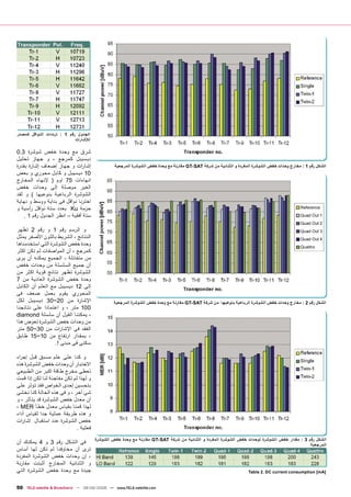 : ﺗﺮﺩﺩﺍﺕ ﺍﻟﻨﻮﺍﻗﻞ ﻛﻤﺼﺪﺭ ﻟﻺﺷﺎﺭﺍﺕ ﺷﺮﻕ ﻣﻊ ﻭﺣﺪﺓ ﺧﻔﺾ ﺷﻮﺷﺮﺓ 3.0 ﺩﻳﺴﻴﺒﻞ ﻛﻤﺮﺟﻊ ، ﻭ ﺟﻬﺎﺯ ﺗﺤﻠﻴﻞ ﺇﺷﺎ ﺭﺍﺕ ﻭ ﺟﻬﺎﺯ ﺇﺿﻌﺎﻑ ﺇﺷﺎﺭﺓ ﺑﻘﺪﺭﺓ ﺍﻟﺸﻜﻞ ﺭﻗﻢ 1 : ﻣﺨﺎﺭﺝ ﻭﺣﺪﺍﺕ ﺧﻔﺾ ﺍﻟﺸﻮﺷﺮﺓ ﺍﻟﻤﻔﺮﺩﺓ ﻭ ﺍﻟﺜﻨﺎﺋﻴﺔ ﻣﻦ ﺷﺮﻛﺔ GT-SATﻣﻘﺎﺭﻧﺔ ﻣﻊ ﻭﺣﺪﺓ ﺧﻔﺾ ﺍﻟﺸﻮﺷﺮﺓ ﺍﻟﻤﺮﺟﻌﻴﺔ 01 ﺩﻳﺴﻴﺒﻞ ﻭ ﻛﺎﺑﻞ ﻣﺤﻮﺭﻱ ﻭ ﺑﻌﺾ ﺍﻧﻬﺎءﺍﺕ 57 ﺍﻭﻡ ) ﻹﻧﻬﺎء ﺍﻟﻤﺨﺎﺭﺝ ﺍﻟﻐﻴﺮ ﻣﻮﺻﻠﺔ ﺇﻟﻰ ﻭﺣﺪﺍﺕ ﺧﻔﺾ ﺍﻟﺸﻮﺷﺮﺓ ﺍﻟﺮﺑﺎﻋﻴﺔ ﺑﻨﻮﻋﻴﻬﺎ ( ﻭ ﻟﻘﺪ ﺍﺧﺘﺮﻧﺎ ﻧﻮﺍﻗﻞ ﻓﻰ ﺑﺪﺍﻳﺔ ﻭﻭﺳﻂ ﻭ ﻧﻬﺎﻳﺔ ﺣﺰﻣﺔ Kuﺑﻌﺪﺩ ﺳﺘﺔ ﻧﻮﺍﻗﻞ ﺭﺃﺳﻴﺔ ﻭ Reference ﺳﺘﺔ ﺃﻓﻘﻴﺔ – ﺍﻧﻈﺮ ﺍﻟﺠﺪﻭﻝ ﺭﻗﻢ 1 . 1 Quad Out 2 Quad Out ﻭ ﺍﻟﺮﺳﻢ ﺭﻗﻢ 1 ﻭ ﺭﻗﻢ 2 ﺗﻈﻬﺮ 3 Quad Out ﺍﻟﻨﺘﺎﺋﺞ ، ﺍﻟﺸﺮﻳﻂ ﺑﺎﻟﻠﻮﻥ ﺍﻷﺻﻔﺮ ﻳﻤﺜﻞ 4 Quad Out ﻭﺣﺪﺓ ﺧﻔﺾ ﺍﻟﺸﻮﺷﺮﺓ ﺍﻟﺘﻲ ﺍﺳﺘﺨﺪﻣﻨﺎﻫﺎ Quattro ﻛﻤﺮﺟﻊ ، ﺃﻥ ﺍﻟﻤﻮﺍﺻﻔﺎﺕ ﻟﻢ ﺗﻜﻦ ﺍﻛﺜﺮ ﻣﻦ ﻣﺘﻔﺎﺋﻠﺔ ، ﺍﻟﺠﻤﻴﻊ ﻳﻤﻜﻨﻪ ﺃﻥ ﻳﺮﻯ ﺃﻥ ﺟﻤﻴﻊ ﺍﻟﺴﻠﺴﻠﺔ ﻣﻦ ﻭﺣﺪﺍﺕ ﺧﻔﺾ ﺍﻟﺸﻮﺷﺮﺓ ﺗﻈﻬﺮ ﻧﺘﺎﺋﺞ ﻗﻮﻳﺔ ﺍﻛﺜﺮ ﻣﻦ ﻭﺣﺪﺓ ﺧﻔﺾ ﺍﻟﺸﻮﺷﺮﺓ ﺍﻟﻌﺎﺩﻳﺔ ﻣﻦ 7 ﺇﻟﻰ 21 ﺩﻳﺴﻴﺒﻞ ﻣﻊ ﺍﻟﻌﻠﻢ ﺃﻥ ﺍﻟﻜﺎﺑﻞ ﺍﻟﻤﺤﻮﺭﻱ ﻳﻘﻮﻡ ﺑﻌﻤﻞ ﺿﻌﻒ ﻓﻰ ﺍﻹﺷﺎﺭﺓ ﻣﻦ 02~03 ﺩﻳﺴﻴﺒﻞ ﻟﻜﻞ ﺍﻟﺸﻜﻞ ﺭﻗﻢ 2 : ﻣﺨﺎﺭﺝ ﻭﺣﺪﺍﺕ ﺧﻔﺾ ﺍﻟﺸﻮﺷﺮﺓ ﺍﻟﺮﺑﺎﻋﻴﺔ ﺑﻨﻮﻋﻴﻬﺎ ﻣﻦ ﺷﺮﻛﺔ GT-SATﻣﻘﺎﺭﻧﺔ ﻣﻊ ﻭﺣﺪﺓ ﺧﻔﺾ ﺍﻟﺸﻮﺷﺮﺓ ﺍﻟﻤﺮﺟﻌﻴﺔ 001 ﻣﺘﺮ ، ﻭ ﺍﻋﺘﻤﺎﺩﺍ ﻋﻠﻰ ﻧﺘﺎﺋﺠﻨﺎ ، ﻳﻤﻜﻨﻨﺎ ﺍﻟﻘﻮﻝ ﺃﻥ ﺳﻠﺴﻠﺔ diamond ﻣﻦ ﻭﺣﺪﺍﺕ ﺧﻔﺾ ﺍﻟﺸﻮﺷﺮﺓ ﺗﻌﻮﺽ ﻫﺬﺍ ﺍﻟﻔﻘﺪ ﻓﻰ ﺍﻹﺷﺎ ﺭﺍﺕ ﻣﻦ 03~05 ﻣﺘﺮ ، ﺑﻤﻘﺪﺍﺭ ﺍﺭﺗﻔﺎﻉ ﻣﻦ 01~51 ﻃﺎﺑﻖ ﺳﻜﻨﻰ ﻓﻰ ﻣﺒﻨﻰ !. ﻭ ﻛﻨﺎ ﻋﻠﻰ ﻋﻠﻢ ﻣﺴﺒﻖ ﻗﺒﻞ ﺇﺟ ﺮﺍء ﺍﻻﺧﺘﺒﺎﺭ ﺃﻥ ﻭﺣﺪﺍﺕ ﺧﻔﺾ ﺍﻟﺸﻮﺷﺮﺓ ﻫﺬﻩ ﺗﻌﻄﻰ ﻣﺨﺮﺝ ﻃﺎﻗﺔ ﺍﻛﺒﺮ ﻣﻦ ﺍﻟﻄﺒﻴﻌﻲ ﻭ ﻟﻬﺬﺍ ﻟﻢ ﺗﻜﻦ ﻣﻔﺎﺟﺌﺔ ﻟﻨﺎ ﻟﻜﻦ ﺇﺫﺍ ﻗﻤﺖ ﺑﺘﺤﺴﻴﻦ ﺇﺣﺪﻯ ﺍﻟﺨﻮﺍﺹ ﻓﻘﺪ ﺗﺆﺛﺮ ﻋﻠﻰ ﺷﺊ ﺁﺧﺮ ، ﻭ ﻓﻰ ﻫﺬﻩ ﺍﻟﺤﺎﻟﺔ ﻛﻨﺎ ﻧﺨﺸﻰ ﺃﻥ ﻣﻌﺪﻝ ﺧﻔﺾ ﺍﻟﺸﻮﺷﺮﺓ ﻗﺪ ﻳﺘﺄﺛﺮ ، ﻭ ﻟﻬﺬﺍ ﻗﻤﻨﺎ ﺑﻘﻴﺎﺱ ﻣﻌﺪﻝ ﺧﻄﺄ ، MER ﻭ ﻫﺬﻩ ﻃﺮﻳﻘﺔ ﻋﻤﻠﻴﺔ ﺟﺪﺍ ﻟﻘﻴﺎﺱ ﺃﺩﺍء ﺧﻔﺾ ﺍﻟﺸﻮﺷﺮﺓ ﻋﻨﺪ ﺍﺳﺘﻘﺒﺎﻝ ﺇﺷﺎ ﺭﺍﺕ ﻓﻌﻠﻴﺔ . ﺍﻟﺸﻜﻞ ﺭﻗﻢ 3 : ﻣﻘﺪﺍﺭ ﺧﻔﺾ ﺍﻟﺸﻮﺷﺮﺓ ﻟﻮﺣﺪﺍﺕ ﺧﻔﺾ ﺍﻟﺸﻮﺷﺮﺓ ﺍﻟﻤﻔﺮﺩﺓ ﻭ ﺍﻟﺜﻨﺎﺋﻴﺔ ﻣﻦ ﺷﺮﻛﺔ GT-SATﻣﻘﺎﺭﻧﺔ ﻣﻊ ﻭﺣﺪﺓ ﺧﻔﺾ ﺍﻟﺸﻮﺷﺮﺓ ﻓﻰ ﺍﻟﺸﻜﻞ ﺭﻗﻢ 3 ﻭ 4 ﻳﻤﻜﻨﻚ ﺃﻥ ﺍﻟﻤﺮﺟﻌﻴﺔ ﺗﺮﻯ ﺃﻥ ﻣﺨﺎﻭﻓﻨﺎ ﻟﻢ ﺗﻜﻦ ﻟﻬﺎ ﺃﺳﺎﺱ ، ﺇﻥ ﻭﺣﺪﺍﺕ ﺧﻔﺾ ﺍﻟﺸﻮﺷﺮﺓ ﺍﻟﻤﻔﺮﺩﺓ ﻭ ﺍﻟﺜﻨﺎﺋﻴﺔ ﺍﻟﻤﺨﺎﺭﺝ ﺃﺛﺒﺘﺖ ﻣﻘﺎﺭﻧﺔ ﺟﻴﺪﺓ ﻣﻊ ﻭﺣﺪﺓ ﺧﻔﺾ ﺍﻟﺸﻮﺷﺮﺓ ﺍﻟﺘﻲ ]Table 2. DC current consumption [mA 50 TELE-satellite & Broadband — 08-09/2008 — www.TELE-satellite.com