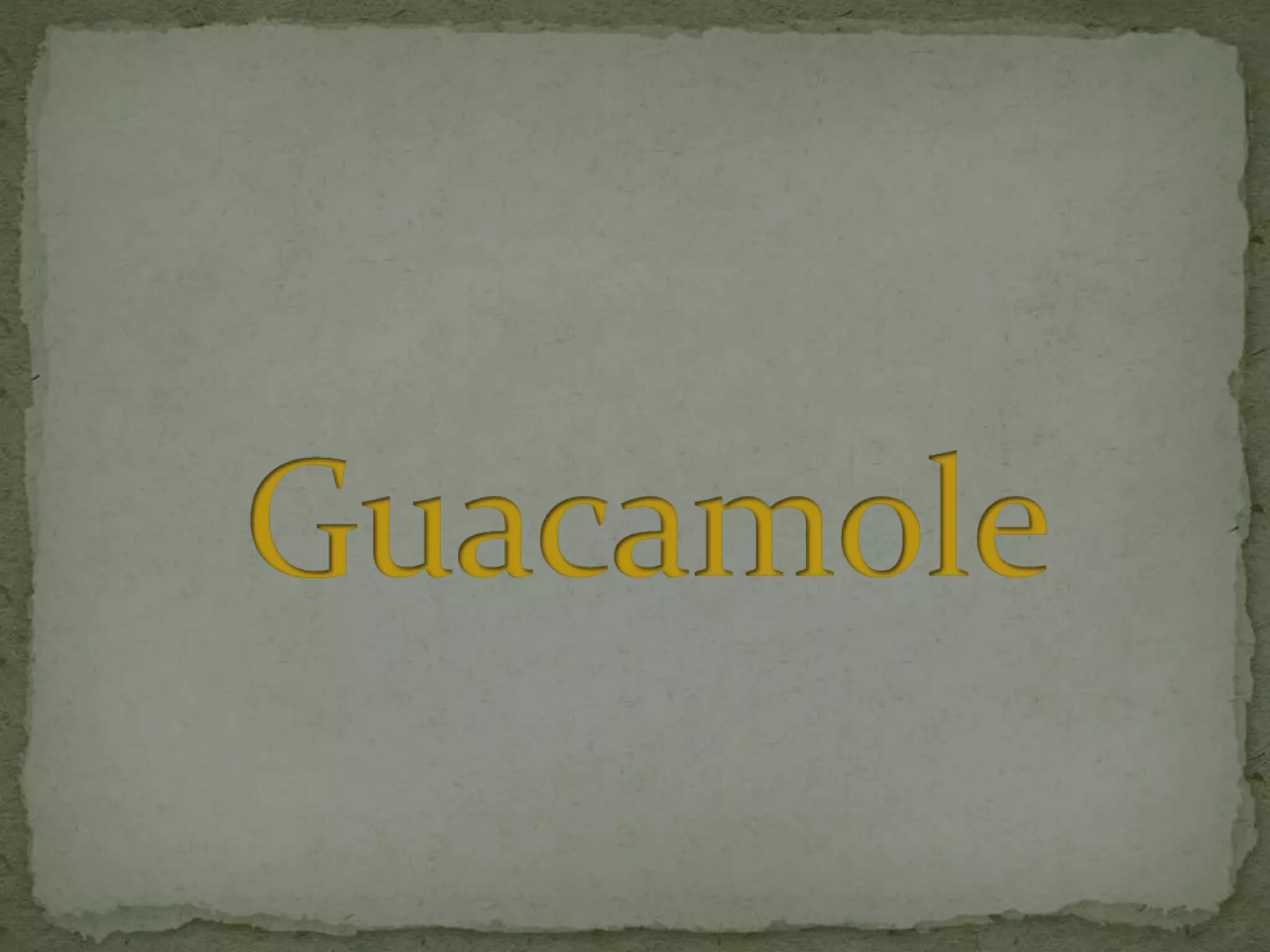 Il documento fornisce una ricetta per preparare la salsa guacamole, che richiede ingredienti come avocado, peperoncino verde, pomodori, aglio, cipolla e lime. La preparazione consiste nel tagliare e schiacciare gli avocado, unire gli altri ingredienti tritati e mescolare con olio d'oliva, lasciando riposare il composto per migliorare i sapori. Il tempo di preparazione è di 20 minuti e la difficoltà è media.
