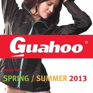 Guahoo®, a Finnish apparel brand, presents their Spring/Summer 2013 collection featuring casual, outdoor, and sports clothing designed for an active lifestyle. The collection includes pants, shorts, t-shirts, windbreakers, and fleece jackets made from breathable and moisture-wicking fabrics like cotton, softshell, and fleece in classic colors. Each piece is designed with functionality, comfort, and style in mind for work or leisure both in and outside the city.