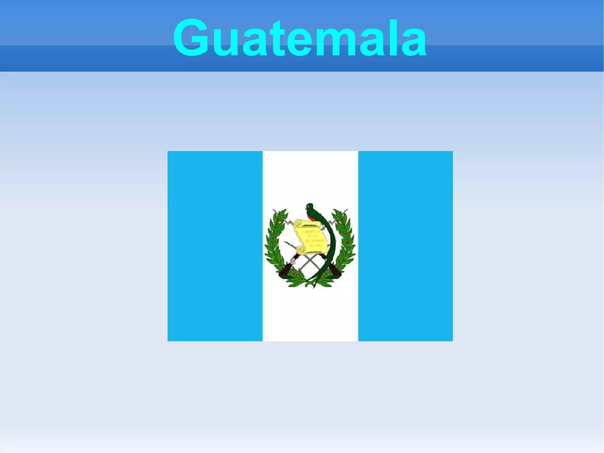Guatemala is a country in Central America bordered by Mexico and the Pacific Ocean. Its capital is Guatemala City. Guatemala has a population of around 14.6 million people and is a mountainous country with the highest point being Tajumulco Volcano at 4,220 m. While Spanish is the official language, many indigenous Mayan languages are also spoken, especially in rural areas. Guatemala has a predominantly Catholic population but also has Protestant, Orthodox, and indigenous Mayan religious groups. The weather forecast for the next three days includes hot and cloudy mornings with possible afternoon rain, as well as sunny and hot conditions.