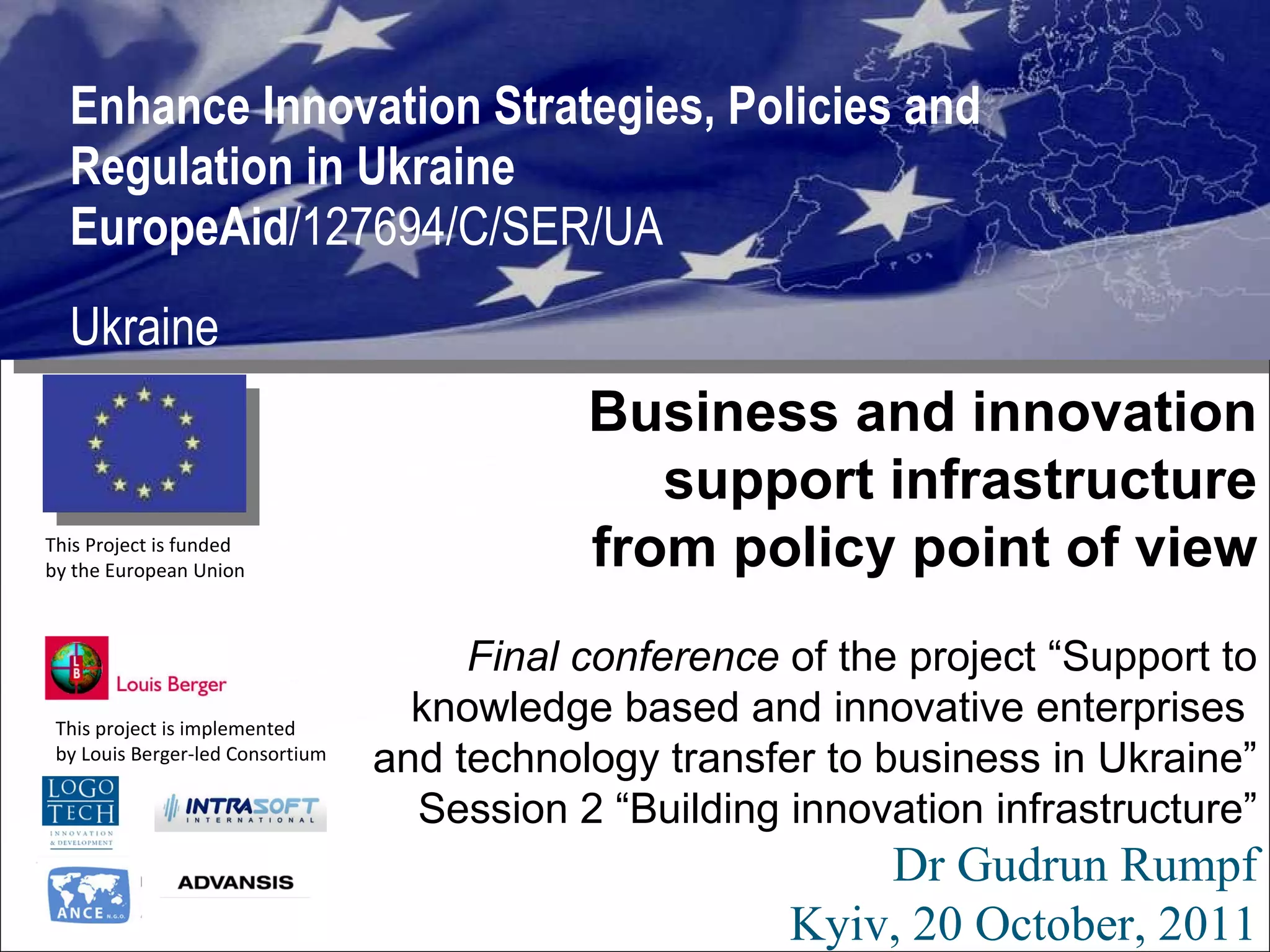 Ukrainian innovation and business support infrastructure is underdeveloped and not well networked compared to Western counterparts. Innovation and business support organizations (I&BSOs) can help address this by bringing together academics, research institutions, and enterprises to support business and innovation. Policy support is needed for I&BSOs, including developing a network with central coordination and regional nodes, ensuring I&BSOs have autonomy, proper equipment, and 100% funding, and enabling collaboration between Ukrainian and EU I&BSOs to leverage international experience. Well networked I&BSOs can significantly help Ukrainian businesses and research organizations become more competitive.