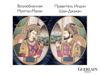 Документ сообщает о перезапуске легенды Shalimar от Guerlain, связанной с возлюбленной индийского правителя Шах-Джахана, Мумтаз-Махал. В этом контексте подчеркивается значимость осеннего сезона для рекламы продукта. Упоминаются рекламные постеры, которые впервые были выпущены.