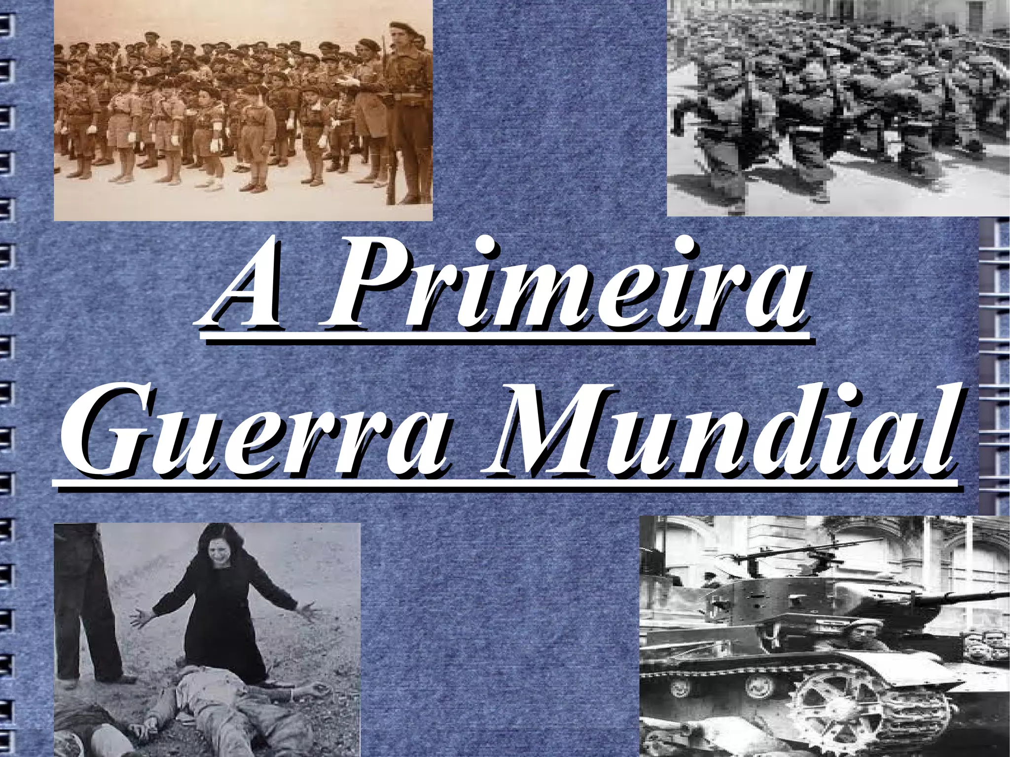 Resumen A PrimeiraGuerra Mundial foi o segundo maior conflito bélico do século XX. Durou do 1914 ó 1918 e puxo os primeiros cravos no ataúde da hexemonía de Europa no mundo. Durante catro anos, millóns de persoas morreron nun conflito que destacou pola súa dureza, polas longas e inamovibles trincheiras e polo uso de gas mostaza para acabar coa resistencia do inimigo. Enfrontou inicialmente a Francia, Reino Unido e mais Rusia (os aliados) contra Alemaña (gobernada por Guillerme II de Alemaña), Austria-Hungría, Bulgaria e mais Turquía (as Potencias Centrais). O desencadeante da guerra foi o asasinato do arquiduque de Austria en Saraievo, pero xa houbera tensións durante os anos anteriores, especialmente na construción naval entre o Reino Unido e Alemaña. Máis tarde uniríanse á guerra outros países como os Estados Unidos, Italia ou o Xapón. Os vencedores foron os aliados, grazas á axuda de Estados Unidos, que entrou polo afundimento do RMS Lusitania en 1917, e impuxeron fortes sancións económicas e territoriais a Alemaña, á vez que desmembraron os imperios de Austria-Hungría e Turquía a partir do Tratado de Versalles en 1919. Creáronse moitos novos estados en Europa: algúns dunha soa nación e outros de varias. Durante a Primeira Guerra Mundial ocorreu tamén a Revolución Rusa, que fixo que Rusia pactase por separado a paz (Tratado de Brest-Litovsk) coas potencias centrais e non estivese representada no Tratado de Versalles ó atoparse en guerra civil. As consecuencias da paz terían moito que ver nun futuro coas causas da Segunda Guerra Mundial.