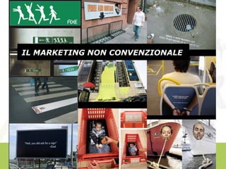 Il documento analizza il marketing non convenzionale, evidenziando l'importanza di nuove tecniche come il guerrilla marketing, il viral marketing e l'ambient marketing. Viene sottolineato che il cliente moderno è più consapevole e partecipa attivamente alla diffusione del messaggio. Si propone di creare esperienze memorabili e coinvolgenti per generare passaparola e un forte legame con la marca.