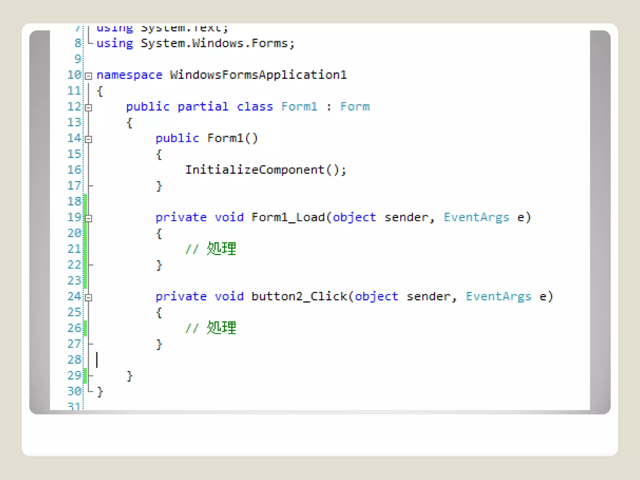 画面レイアウトと イベントハンドラ登録 イベントハンドラ1 DBアクセスして業務処理して画面更新 イベントハンドラ2 入力データを加工してDBアクセスして画面更新 イベントハンドラ3 3